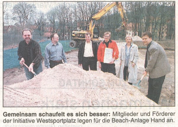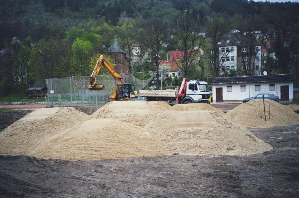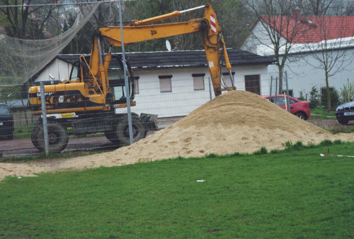 Im Herbst 2000 spendete das "Autohaus Mühlenstraße" 100 Tonnen Sand und jede Menge Autoreifen. Das war der Grundstock für die Errichtung unserer ersten beiden Beachvolleyballfelder