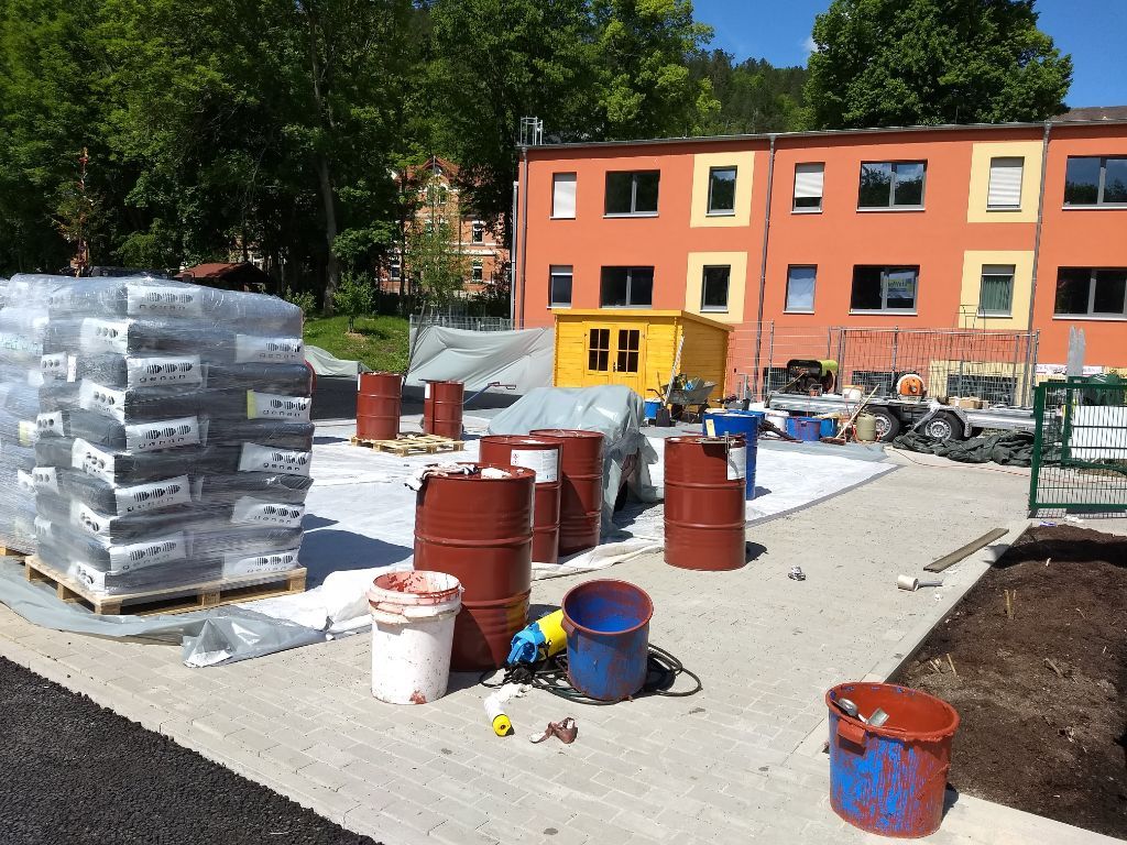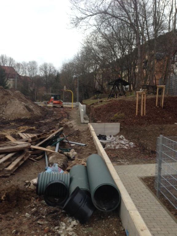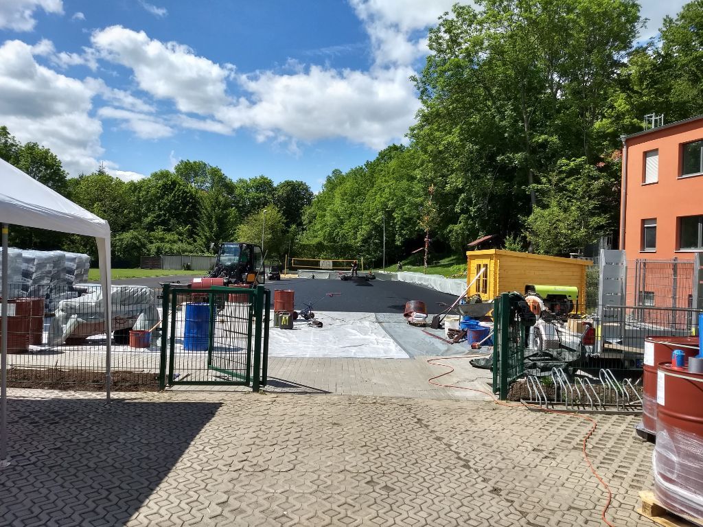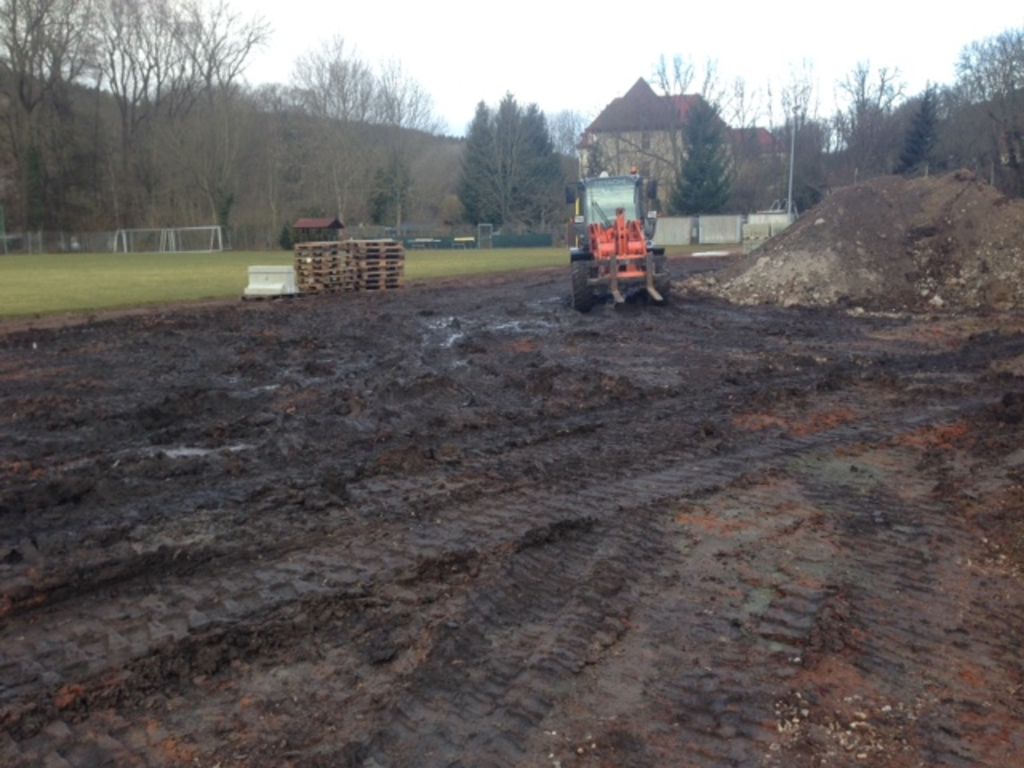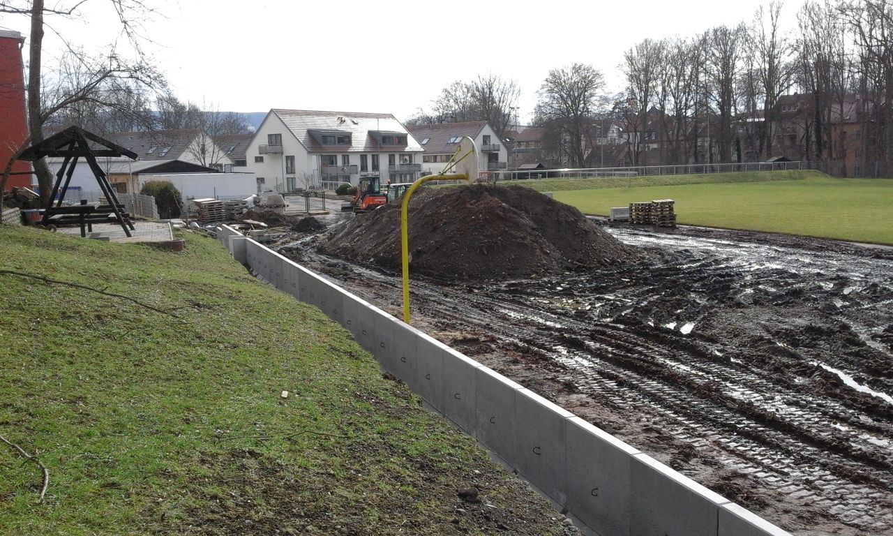 Bau der Böschungs-Begrenzung und Vorbereitungsarbeiten für den Neubau Tartanplatz
