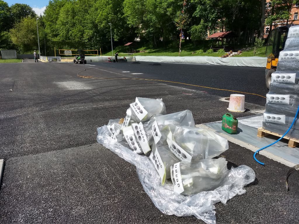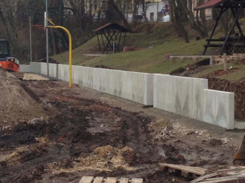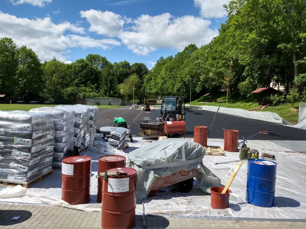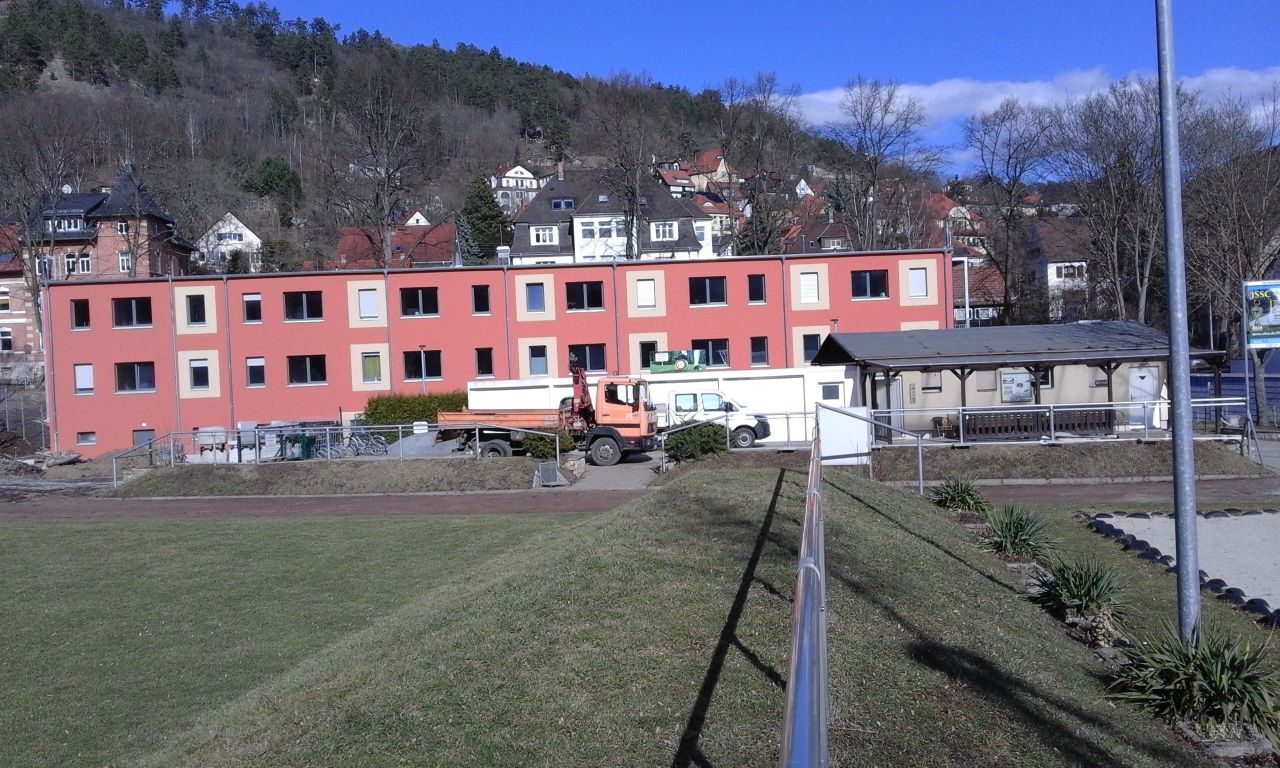 Bau der Böschungs-Begrenzung und Vorbereitungsarbeiten für den Neubau Tartanplatz
