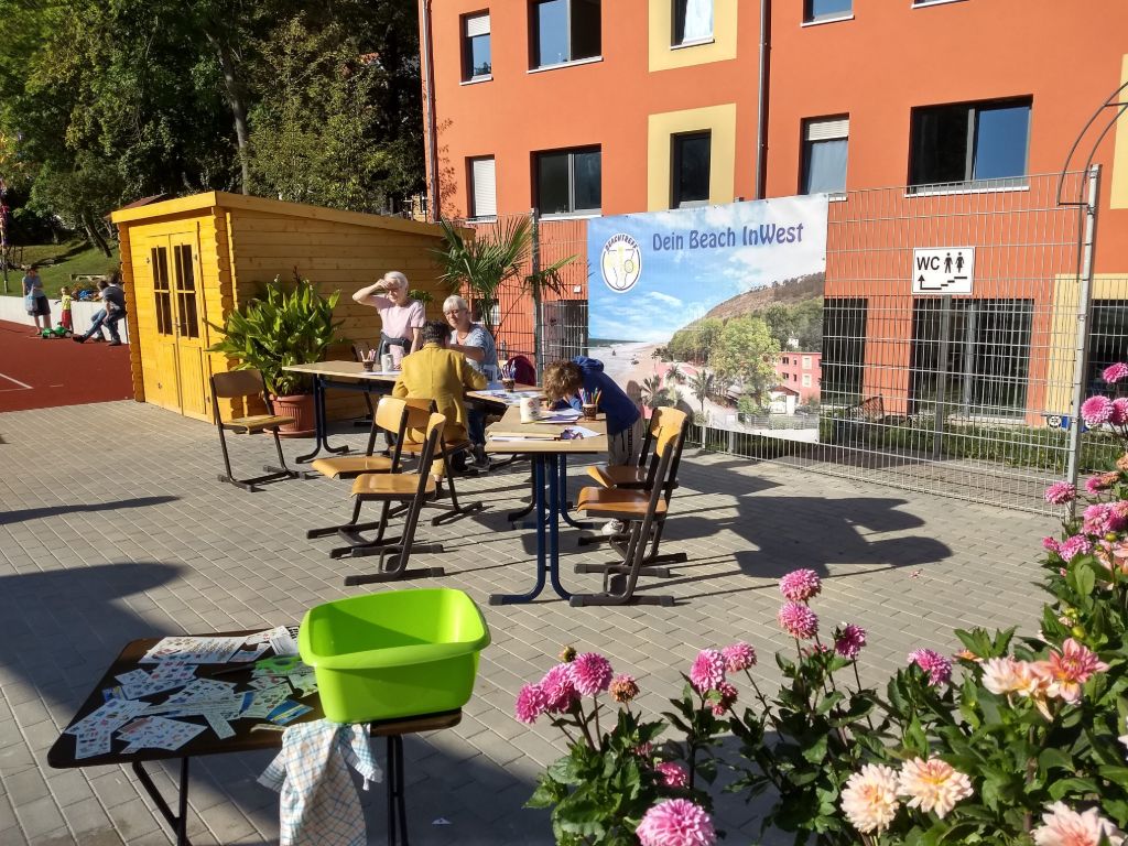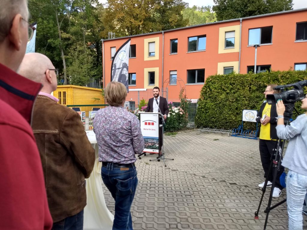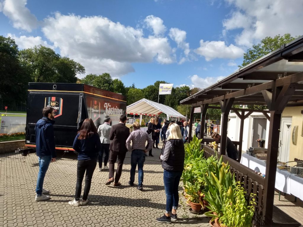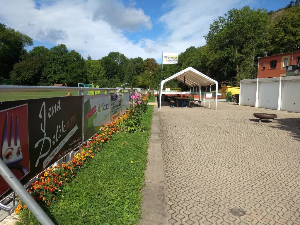 Kurze Statements von Benjamin Koppe (Finanzdezernent Stadt Jena), Karl Hermann Kliewe ( Chef von KIJ), Rüdiger Schütz ( Vorsitzender von Inwest e.V.) und Holger Becker (Ortsteilbürgermeister Jena-West). Zwei Scheckübergaben von 750 € durch Herrn Gottschald (Sparkasse Jena) und Marco Feiler von 440€ (Erlös des 3. Holger Brand Turniers) an den Verein Inwest.