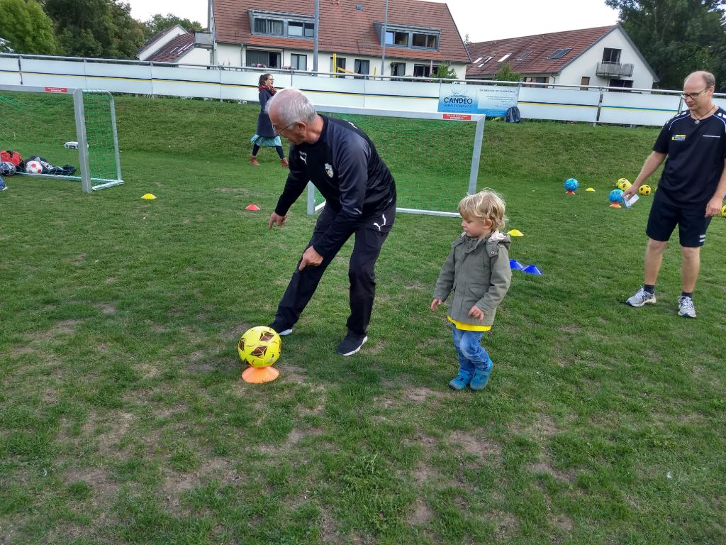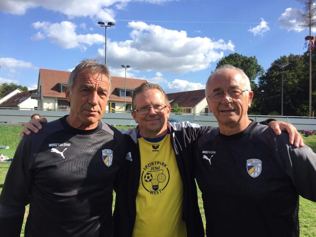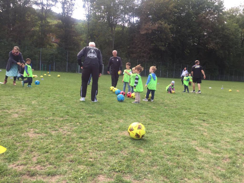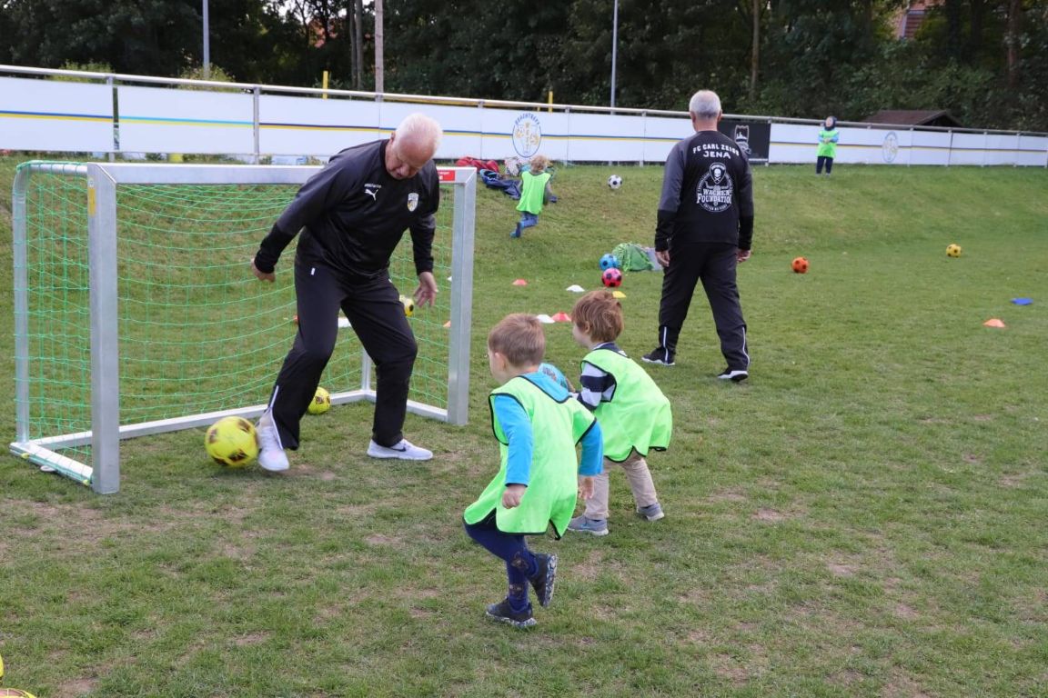 Eine Trainingseinheit der ehemaligen Jenaer Fußballgrößen Ulrich Göhr, Harald Irmscher und Bernd Stange mit unseren Bambinos und ihrem Trainer Tobias Nachtrab.