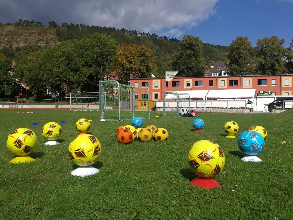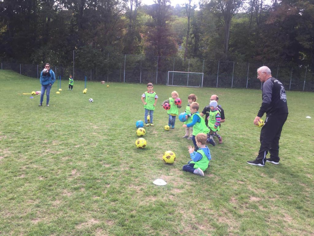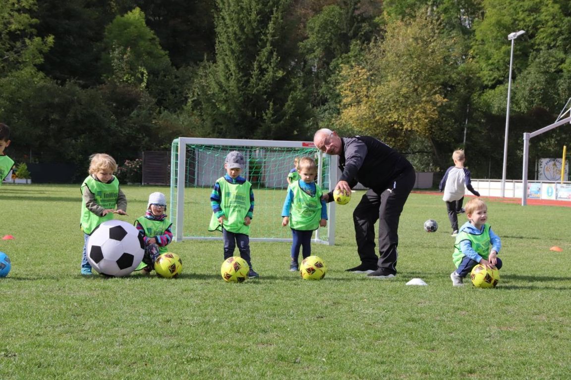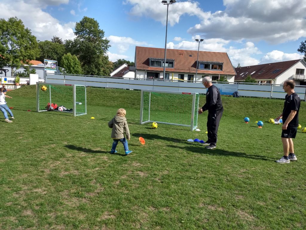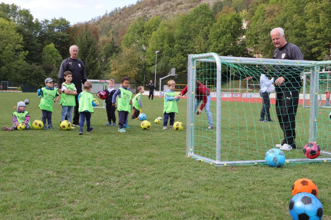 Eine Trainingseinheit der ehemaligen Jenaer Fußballgrößen Ulrich Göhr, Harald Irmscher und Bernd Stange mit unseren Bambinos und ihrem Trainer Tobias Nachtrab.