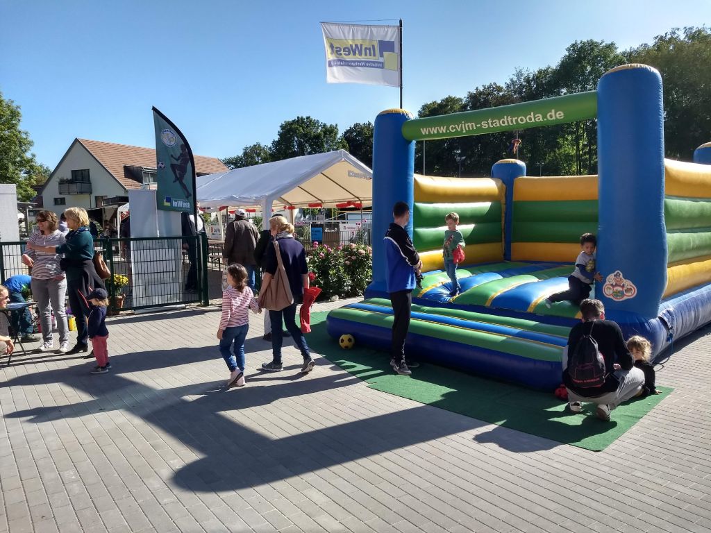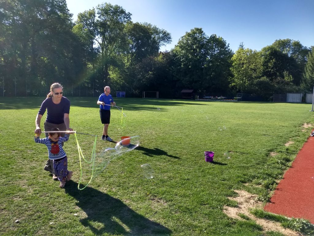 Zahreiche Familien waren unserer Einladung zum Familienfest gefolgt und nahmen unsere Angebote gern an. Hüpfburg, Kindertattoo, Malstraße, Riesenseifenblasen und Zuckerwatte für unsere Kinder, Darts und Leitergolf für die Älteren. Natürlich auch Kaffee und Kuchen, Bratwürste und Waldschratsuppe für die kulinarischen Bedürfnisse!