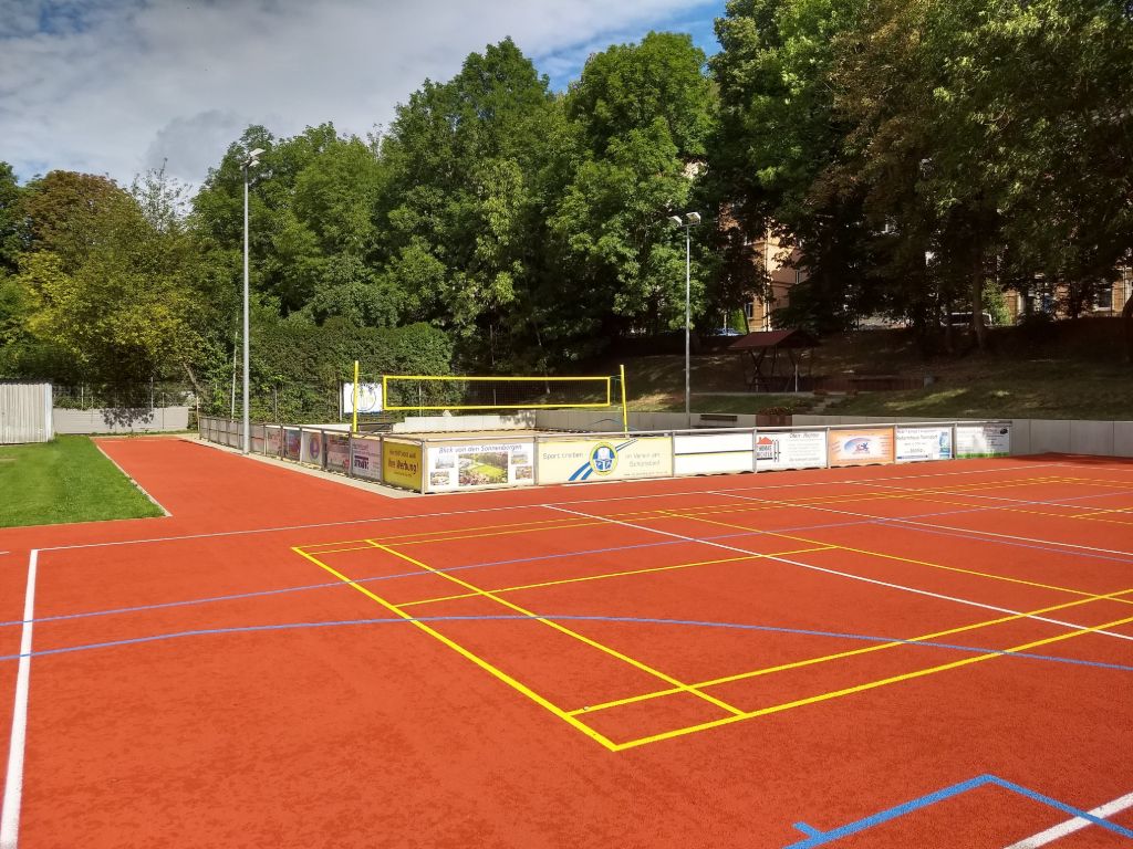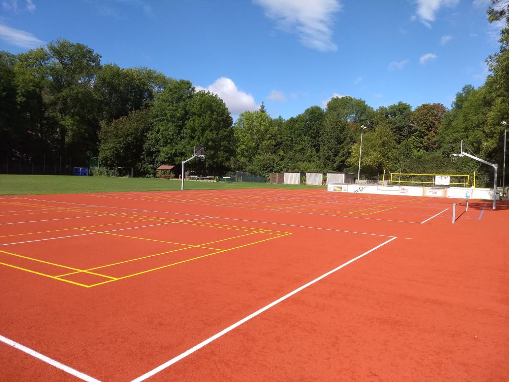 Nach fast zwei Jahren ist es endlich soweit. Die früher mit roter Erde belegten und dann lange als Baustelle genutzten Flächen unseres Areals (Volleyballplätze, Laufbahn) wurden mit modernem Sportbelag (Tartan) versehen. Damit hat unserer Verein ein weiteres wichtiges Vorhaben umgesetzt. Wir haben jetzt eine Sportstätte, die bei jedem Wetter genutzt werden kann.